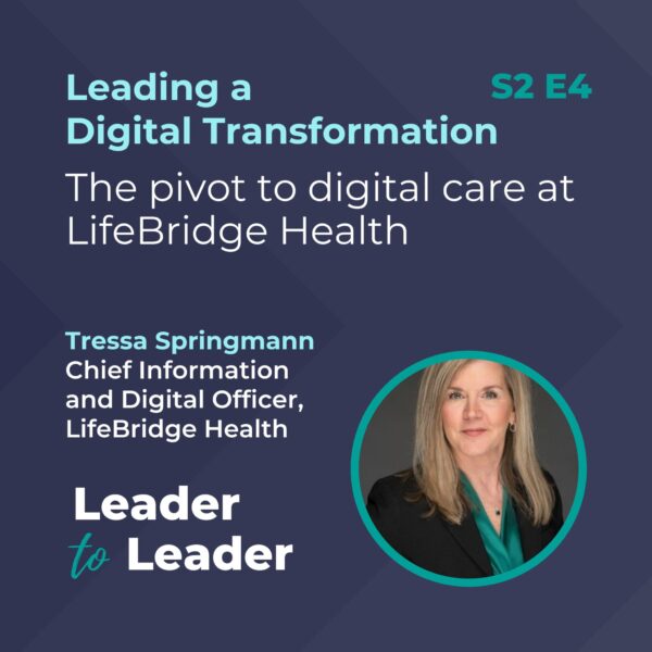 From Healthcare IT Leaders, you’re listening to leader to leader with Ben Hilmes. Our guest today is Tressa Springmann, senior vice president and chief information and digital officer for LifeBridge Health. In our conversation, Tressa discusses LifeBridge Health’s commitment to being digital, which she identifies as managing through careful measurement and focusing on providing better tools for both care providers and their patients.