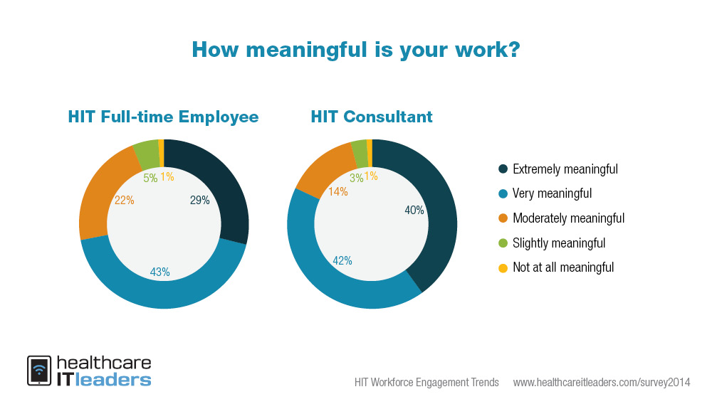 We asked full-time healthcare IT employees and consultants that question in our 2014 HIT Workforce Engagement survey. In it, 78% told us that they find their work “extremely meaningful” or “very meaningful.” Only 1% of respondents said their work was “not at all meaningful.”